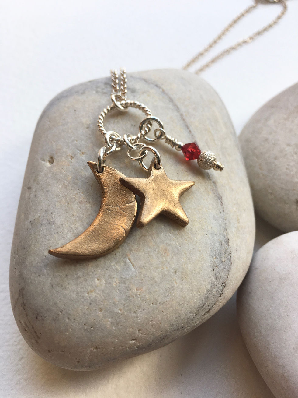 Heart pendant, handmade bronze, Swarovski Crystal and sterling silver